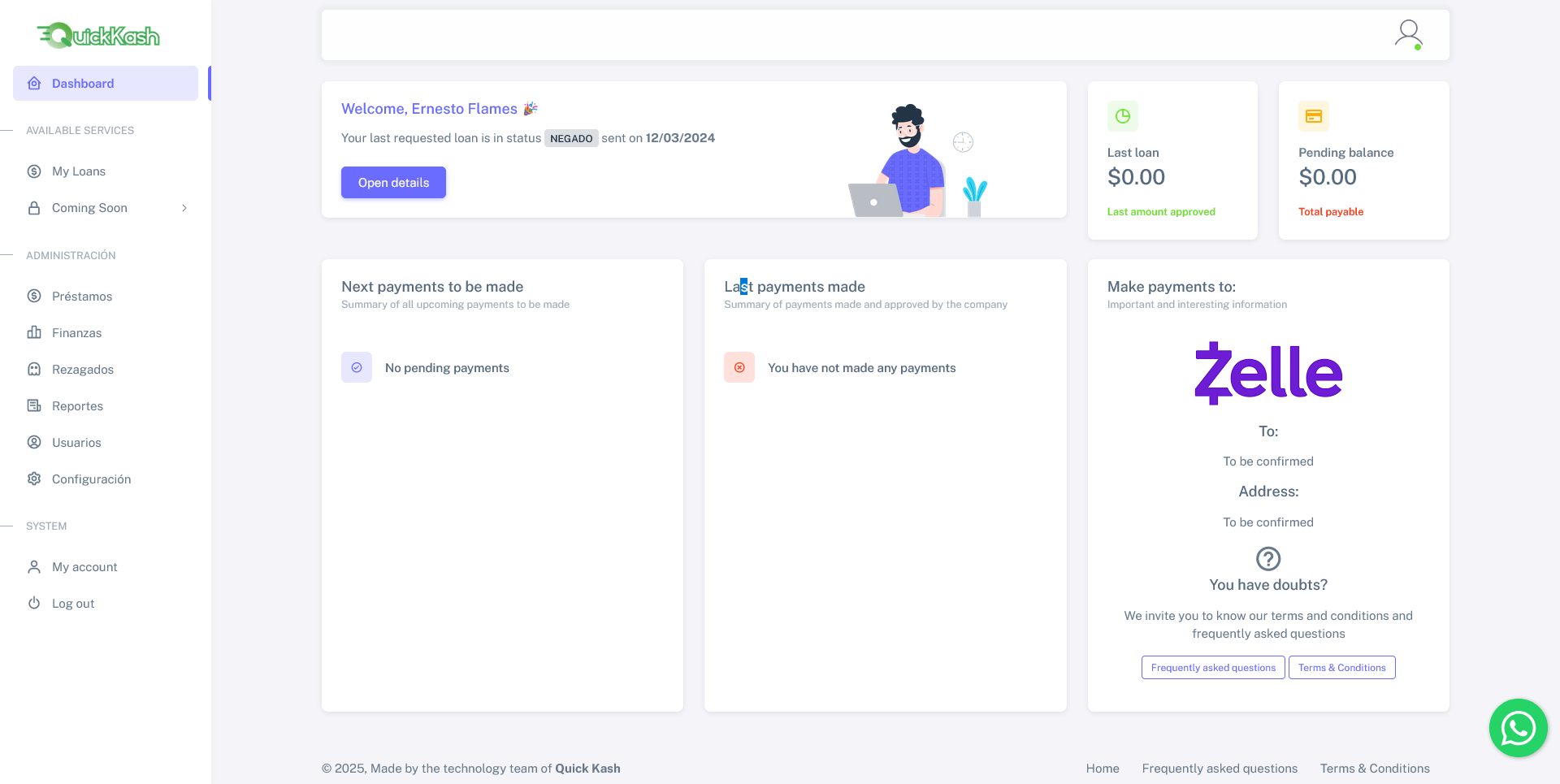 Desarrollé un portal completo para una empresa de préstamos en Estados Unidos, enfocado en brindar una experiencia fluida tanto para visitantes como para clientes registrados.